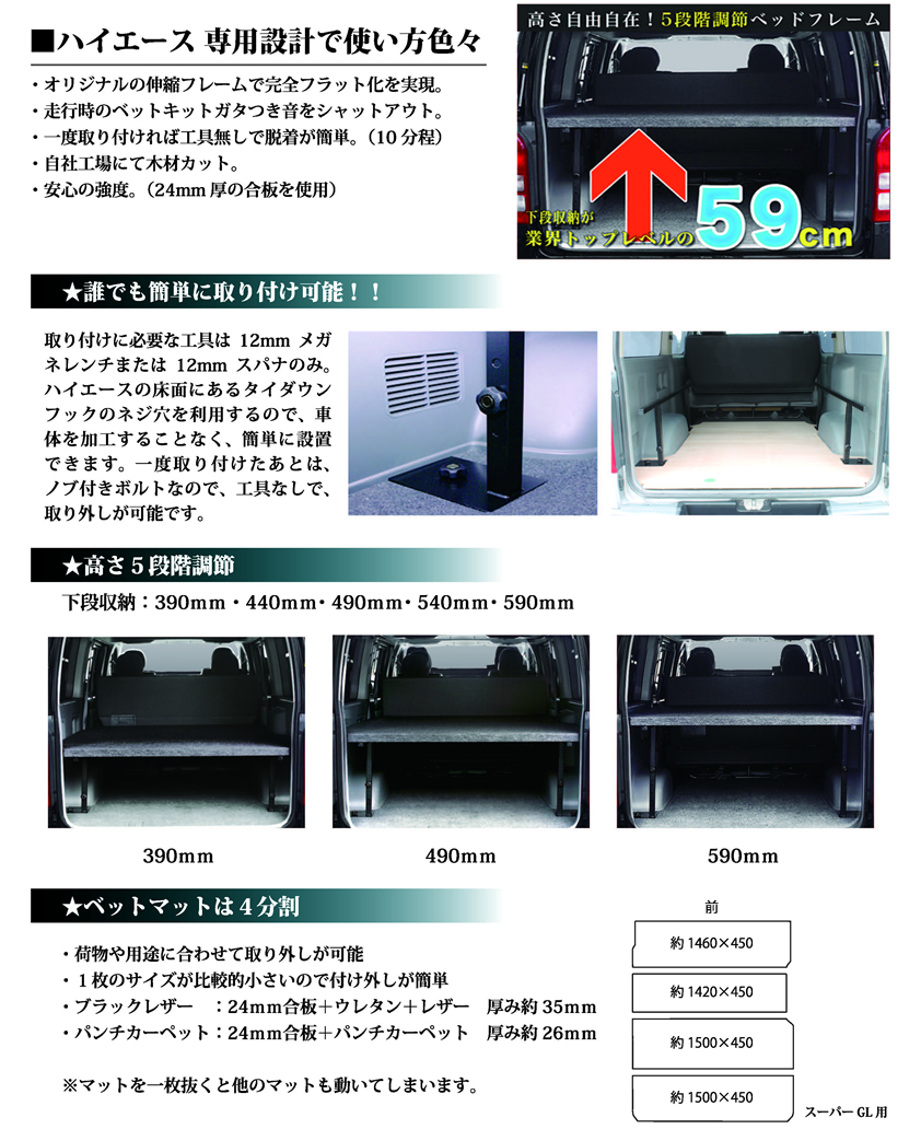職人さん向けのフロアボードやインナーキャリアなど、内装をお好みにカスタマイズできます。 ハイエース・キャラバンなど仕事車のための道具屋さんです。